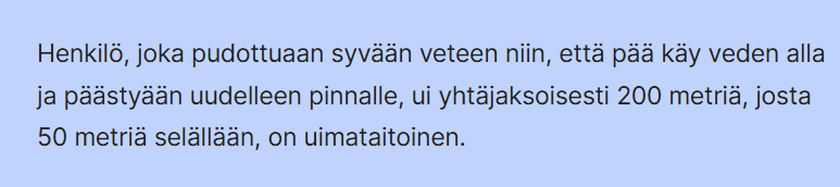 Lue lisää uimataidon määritelmästä: Uimataito Suomessa – Suomen Uimaopetus- ja Hengenpelastusliitto ry